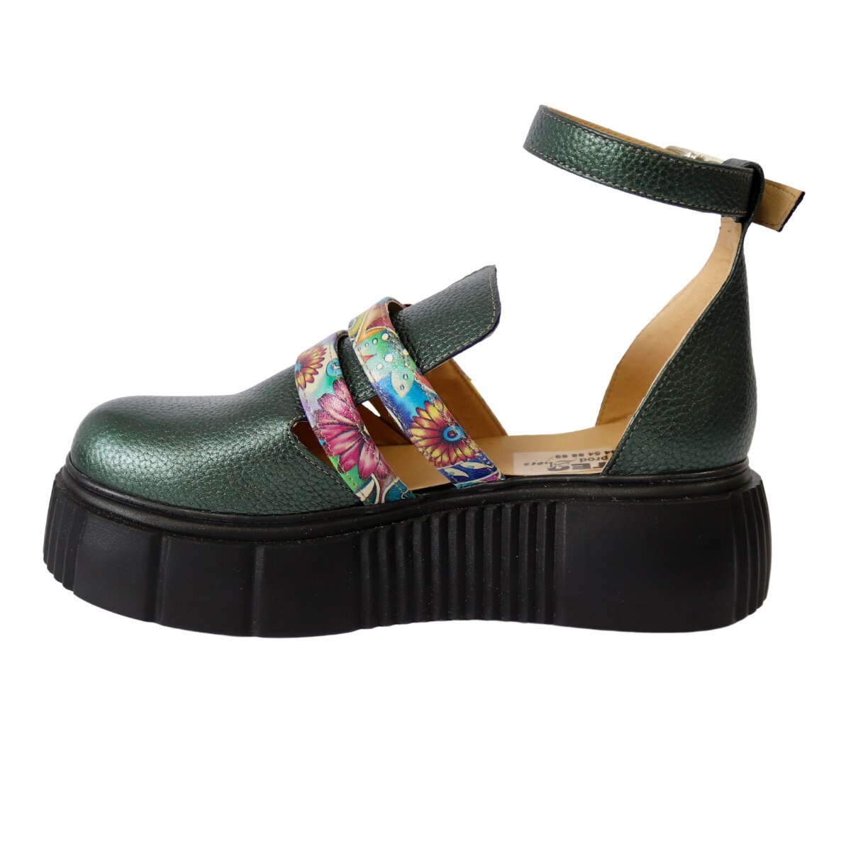 Зелени дамски сандали с висока подметка, каишки и затворени пръсти