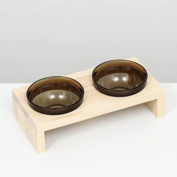 Подставка двойная с мисками из тёмного стекла 30 х 14.5 х 6.5 см, 2 х