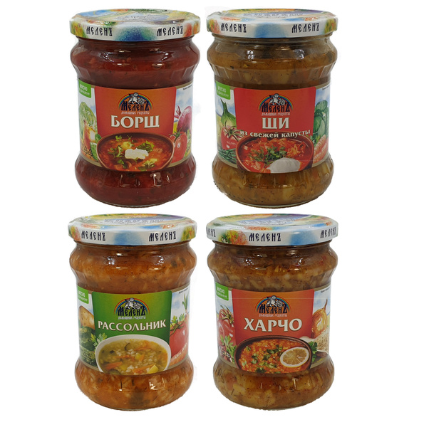 Набор супов №3 "Меленъ" (Щи, Борщ, Рассольник, Харчо), 4 баночки по