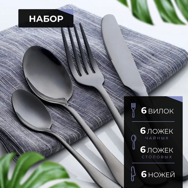 Набор столовых приборов 24 предмета черный глянец купить на OZON по